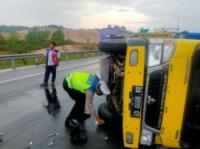 Ditabrak Terios,, Colt Diesel Terbalik di Tol Pekanbaru-Dumai, Satu Luka Ringan