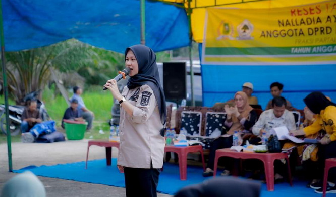 Dalam sambutannya Nalladia Ayu Rokan menyampaikan tujuan diadakannya Reses ini guna menyerap aspirasi dan keluhan dari masyarakat Rokan hilir dengan harapan untuk kemajuan Kabupaten Rokan Hilir lebih baik lagi kedepannya,"ujar Ketua Fraksi Golkar Provinsi Riau di hadapan masyarakat.