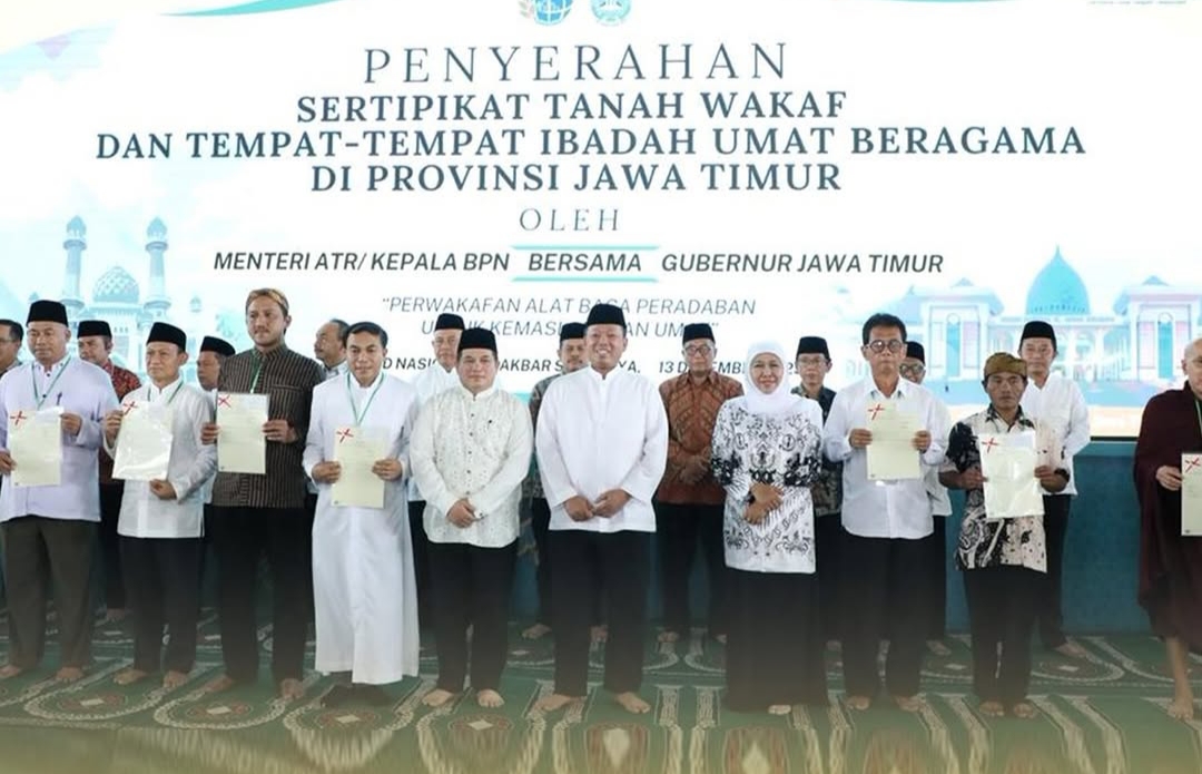 Menteri ATR/BPN dan Gubernur Jatim Serahkan 2.532 Sertipikat Tanah Wakaf dan Rumah Ibadah Sabtu, 13/12/2025 | 17:09