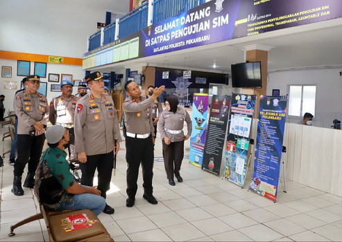 BNEWS - Kapolda Riau Irjen Pol Mohammad Iqbal melakukan inspeksi mendadak (sidak) ke Satuan Penyelenggara Administrasi SIM (Satpas) Polresta Pekanbaru, Jumat (28/10/2022).