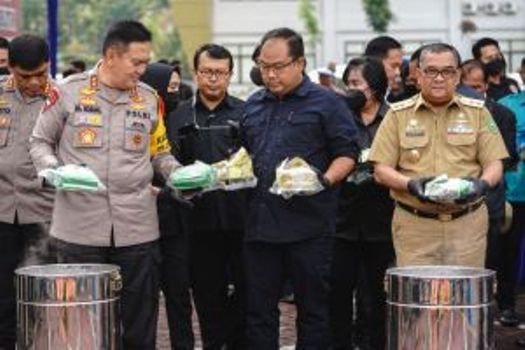BNEWS - Polda Riau hari ini, Kamis (22/12/2022), memusnahkan barang bukti (BB) narkotika jenis sabu seberat 91 kg, ganja 25 Kg, dan pil ekstasi sebanyak 118 butir, di Mapolda.