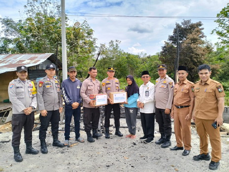 BNEWS - Polsek Tambang memberikan bantuan sembako kepada korban kebakaran rumah, di RT 01 RW 02 Dusun II desa Rimbo Panjang, kecamatan Tambang, kabupaten Kampar, Senin (13/2/2023).