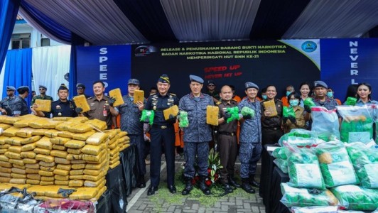 BNEWS - Badan Narkotika Nasional (BNN) memusnahkan sebanyak 1,1 ton narkotika, barang bukti (BB) dari empat kasus selama Februari 2023. Pemusnahan BB ini dilakukan pada Selasa (28/3/2023).