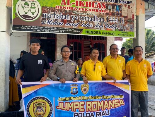 BNEWS - Polda Riau kembali menggelar Jum’at Barokah yang dikenal dengan nama "Jumpe Romansa" atau Jumat Peduli Biro Sumber Daya Manusia) di wilayah hukum Polda Riau. Program ini merupakan program rutin setiap hari Jumat, sebagai bentuk kepedulian terhadap masyarakat.