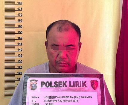 PN alias Ipung (50), warga Desa Sidomulyo, Kecamatan Lirik, diringkus unit Reskrim Polsek Lirik, Kamis 6 Juli 2023, pukul 17.00 WIB.