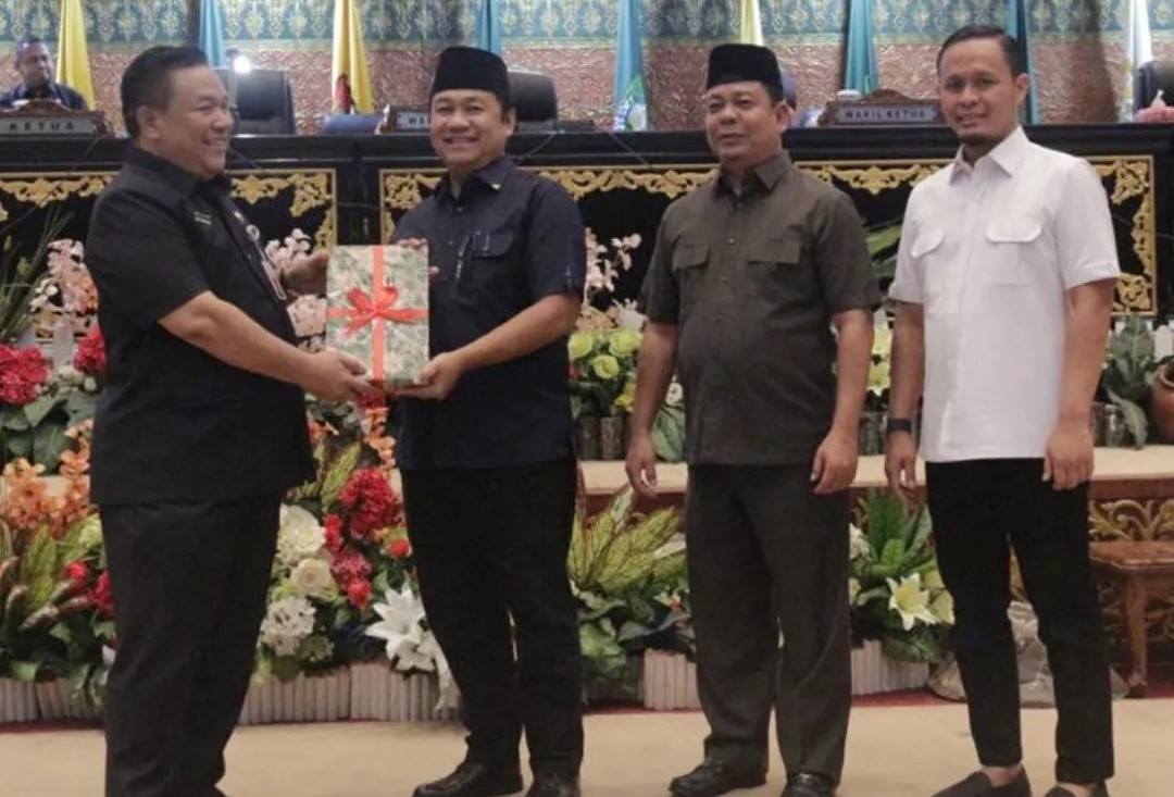 BNEWS - DPRD Provinsi Riau menggelar Rapat Paripurna dengan agenda penyampaian Nota Pengantar Keuangan Rancangan Peraturan Daerah (Ranperda) tentang APBD Provinsi Riau Tahun Anggaran 2024 oleh Gubernur Riau, di Ruang Rapat Paripurna DPRD Provinsi Riau, Selasa (28/11/2023).