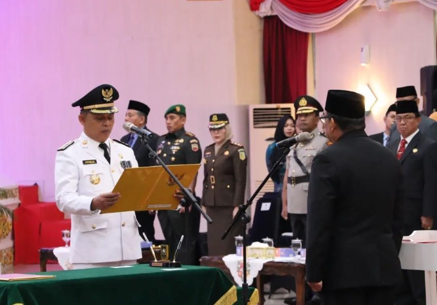 Proses pelantikan Herman sebagai Pj Bupati Inhil