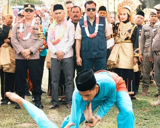 Anggota DPRD Riau Mardianto Manan bersama Bupati Kuansing Suhardiman Amby hadiri buka pacu jalur Pangean, Sabtu (8/6/2024).